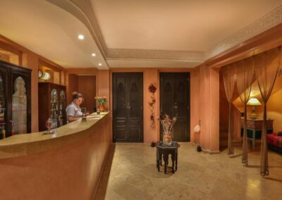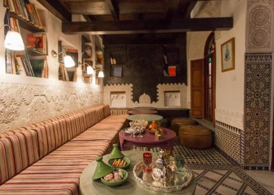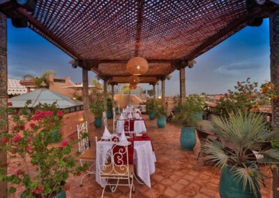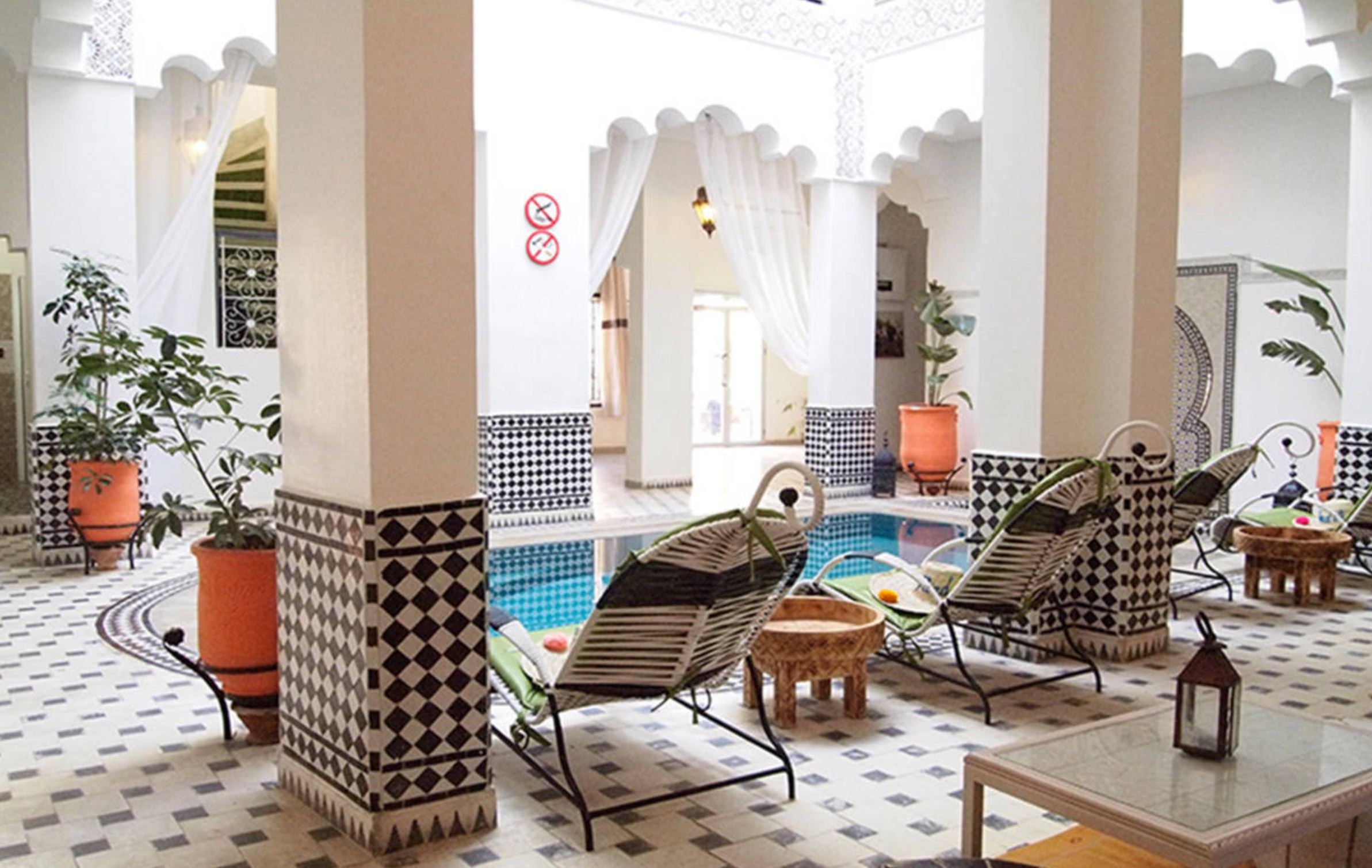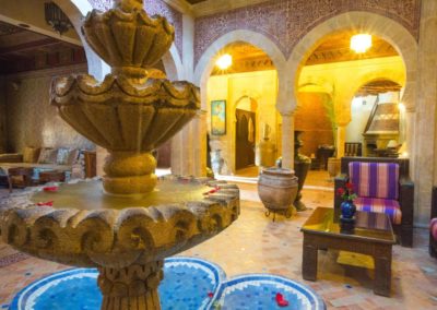 酒店充滿著典型的傳統摩洛哥情調。氛圍, 裝潢以及接待人員的風格處處體現出摩洛哥熱情好客的人文氣息。你可以在寂靜的帶有棚頂的涼臺上欣賞麥迪那美麗的星空,或者在摩洛哥式客廳的壁爐前度過恬靜的時光。