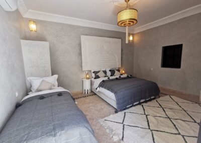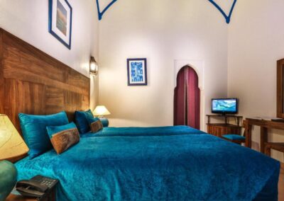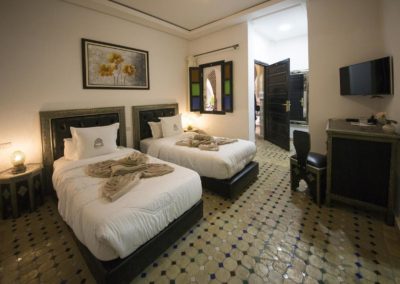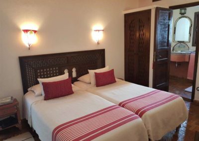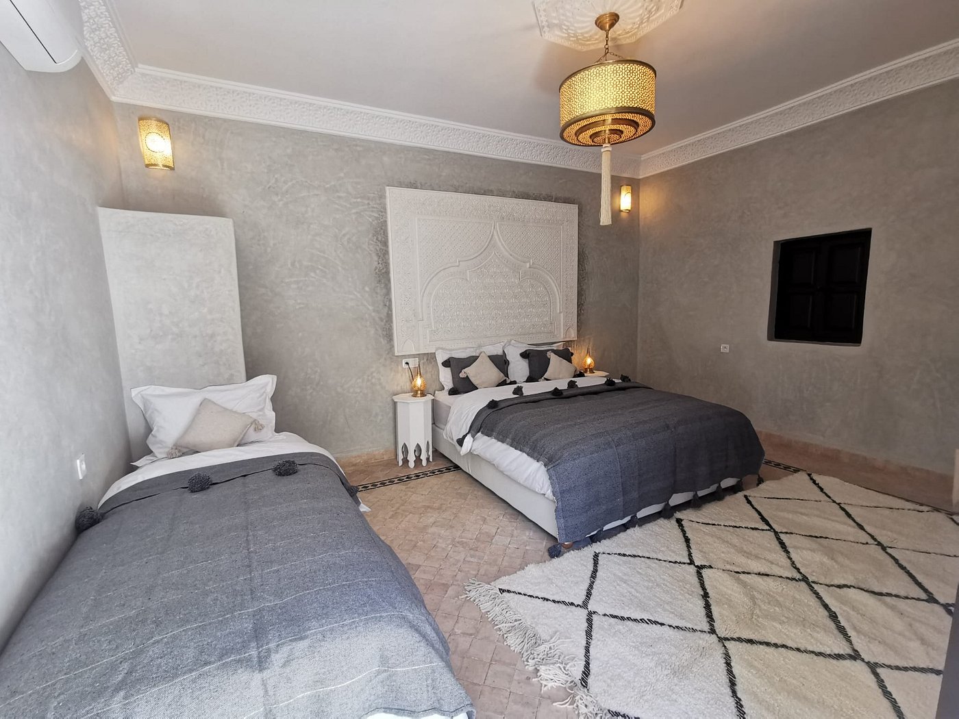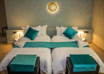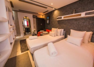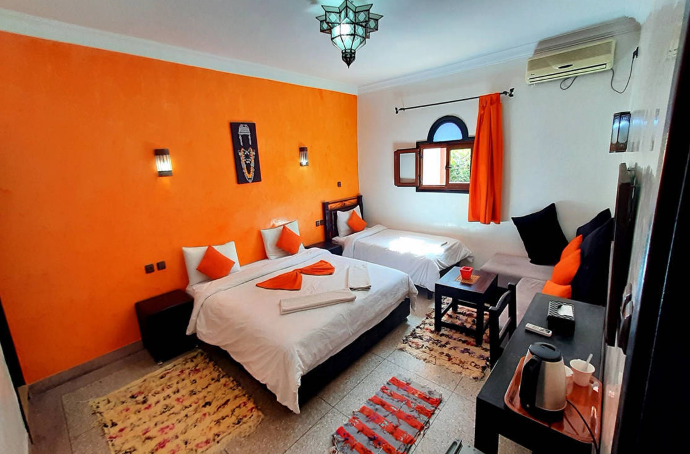 • 雙人房可指定兩單床/一大床,價格相同。三人房則沒法指定,住宿方有可能安排三張單床,或一張雙人大床搭配加床的形式,特別是傳統庭園住宅Riad里亞德。
