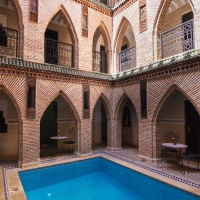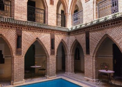 庭院旅館距離德吉瑪廣場近300米,並設有水療中心,提供土耳其浴室,屋頂頂層設有戶外游泳池和餐廳,客人可以在這裡觀賞阿阿特拉斯山脈(Atlas Mountains)的景色。 客房均融合了現代和摩洛哥風格,配有电視。
