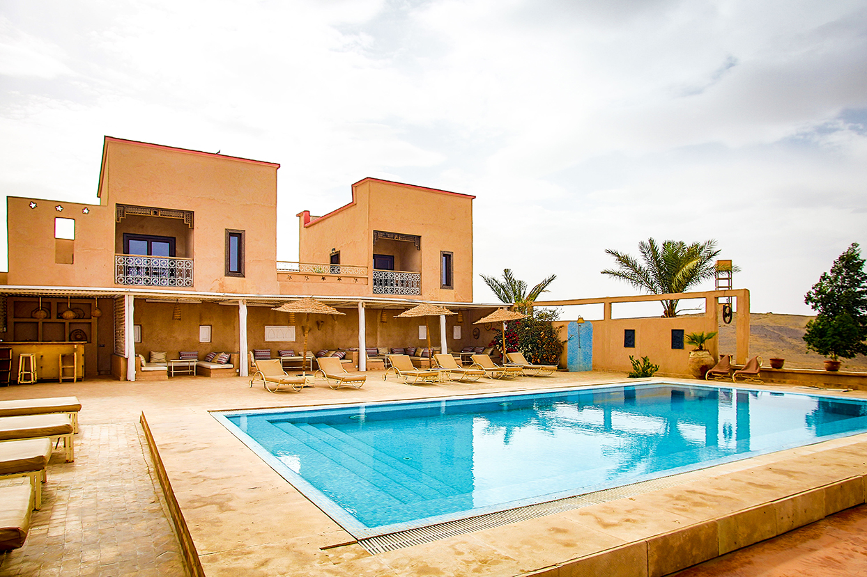 酒店坐落在沙丘腳下的寧靜的環境中,供應環繞著泳池或庭院的寬敞客房和套房。每間客房將地道的摩洛哥特色和現代設施(如空調)融合在一起。