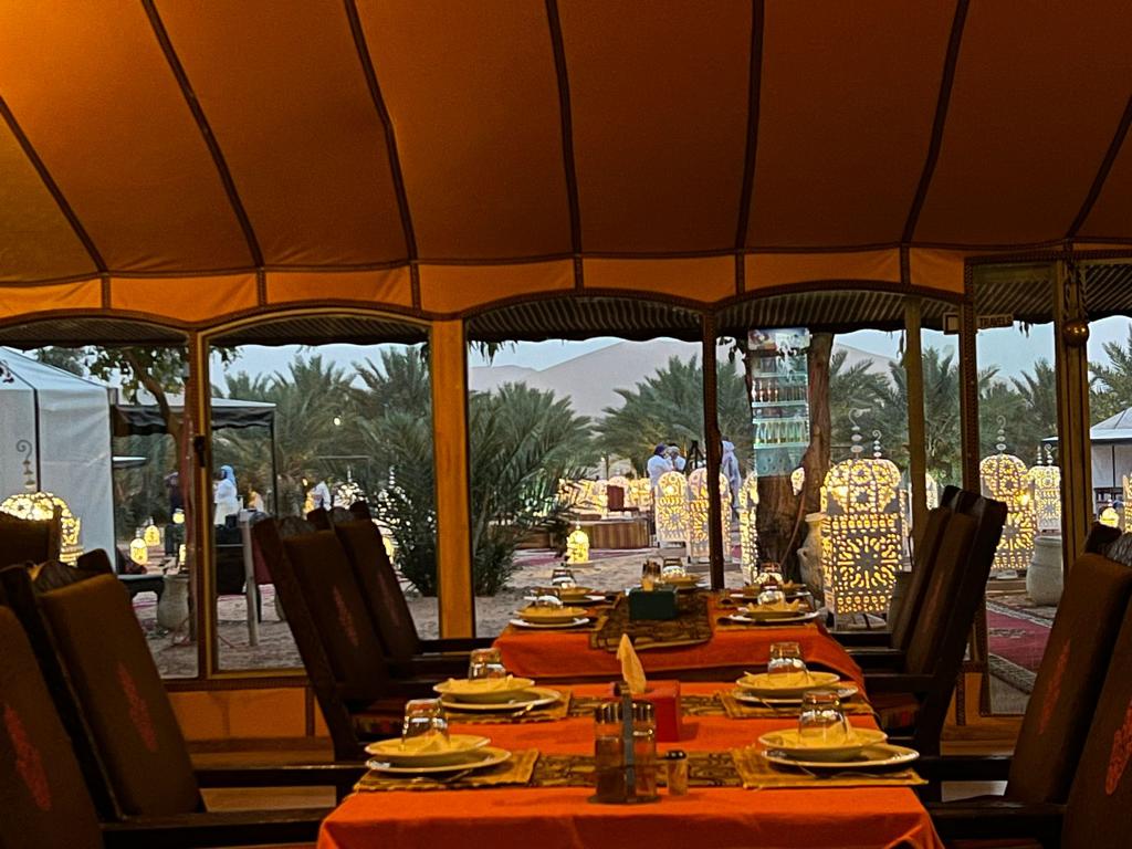 豪華營地位在摩洛哥梅爾祖卡地區(撒哈拉沙漠),每一帳篷均提供獨立洗手間和浴室,以及熱水供應,並擁有一間供應非洲料理的餐廳,客人可在營地享用早餐和晚餐,營地也提供沙漠四驅車和滑沙等自費活動,另外營地每晚均有柏柏爾傳統溝火晚會,客人可與朋友一起載歌載舞、夜觀流星。注意:手機、相機充電都可以如常使用,但請勿在營地內使用耗電量高的電器,如:吹風機)。