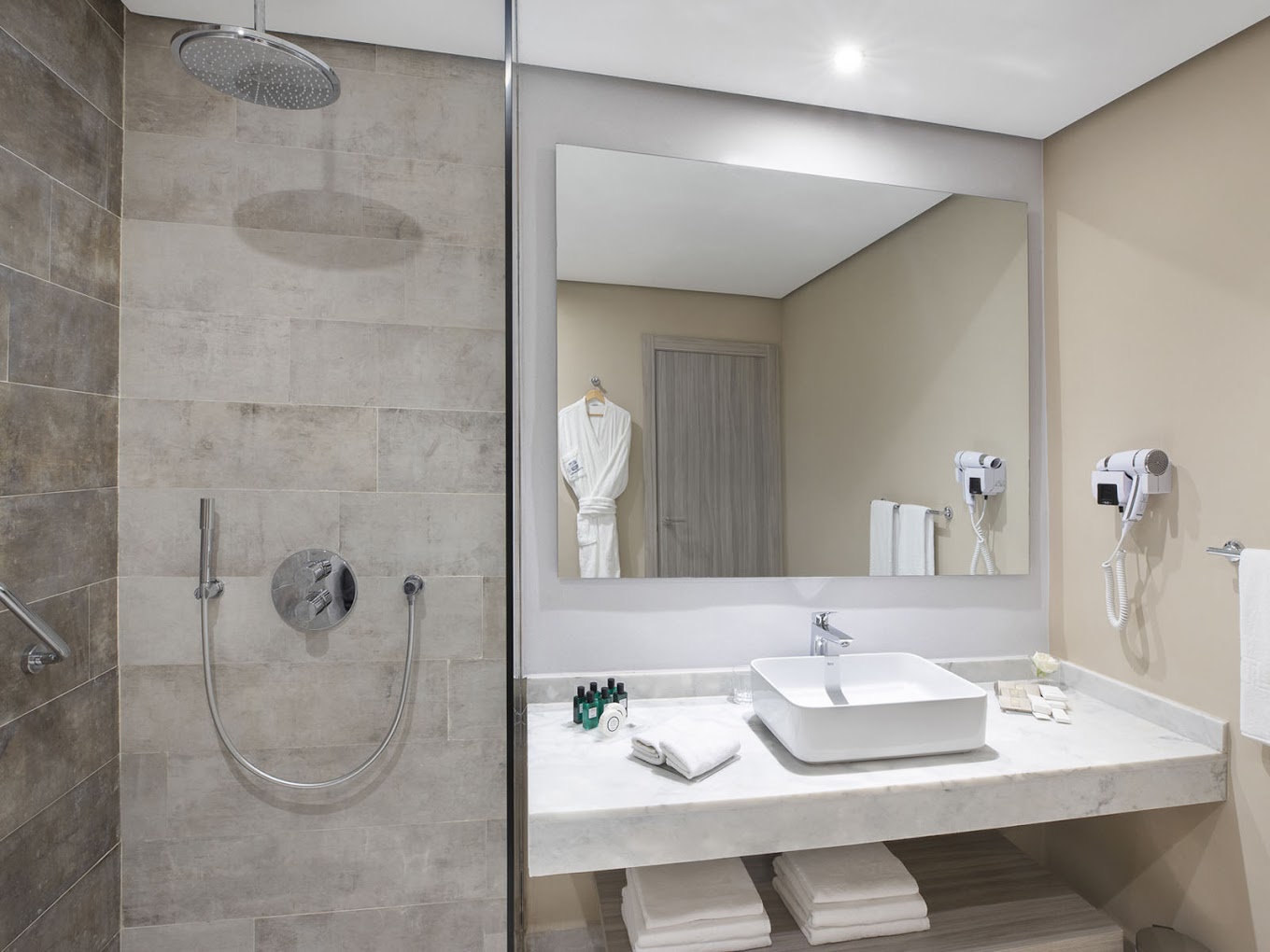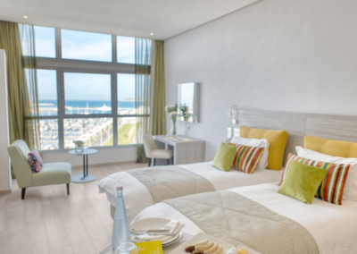 酒店位於市中心,俯瞰著直布羅陀海峽和坦吉爾灣,設有室外游泳池,提供空調客房。酒店的客房和套房均擁有現代風格的裝飾,提供衛星電視以及帶淋浴(或浴缸)和吹風機的私人浴室。